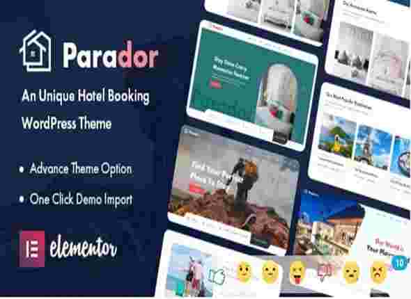 Parador Theme GPL is a stylish hotel booking WordPress theme—features responsive design, room management, Elementor, and WooCommerce for seamless reservations and payments.