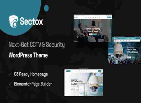 Sectox Theme GPL is a secure WordPress theme for CCTV and security services features service pages, Elementor, WooCommerce, and responsive design for protection-focused sites.